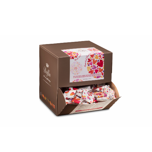 Display med småbitar av choklad. Perfekt till servering och för dem som bara önskar något litet men utsökt. Kärleksmotiv.