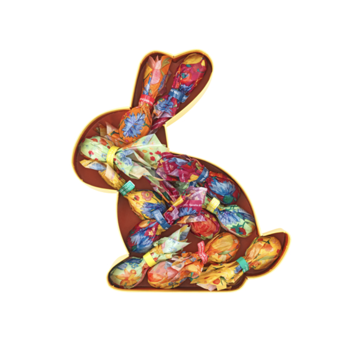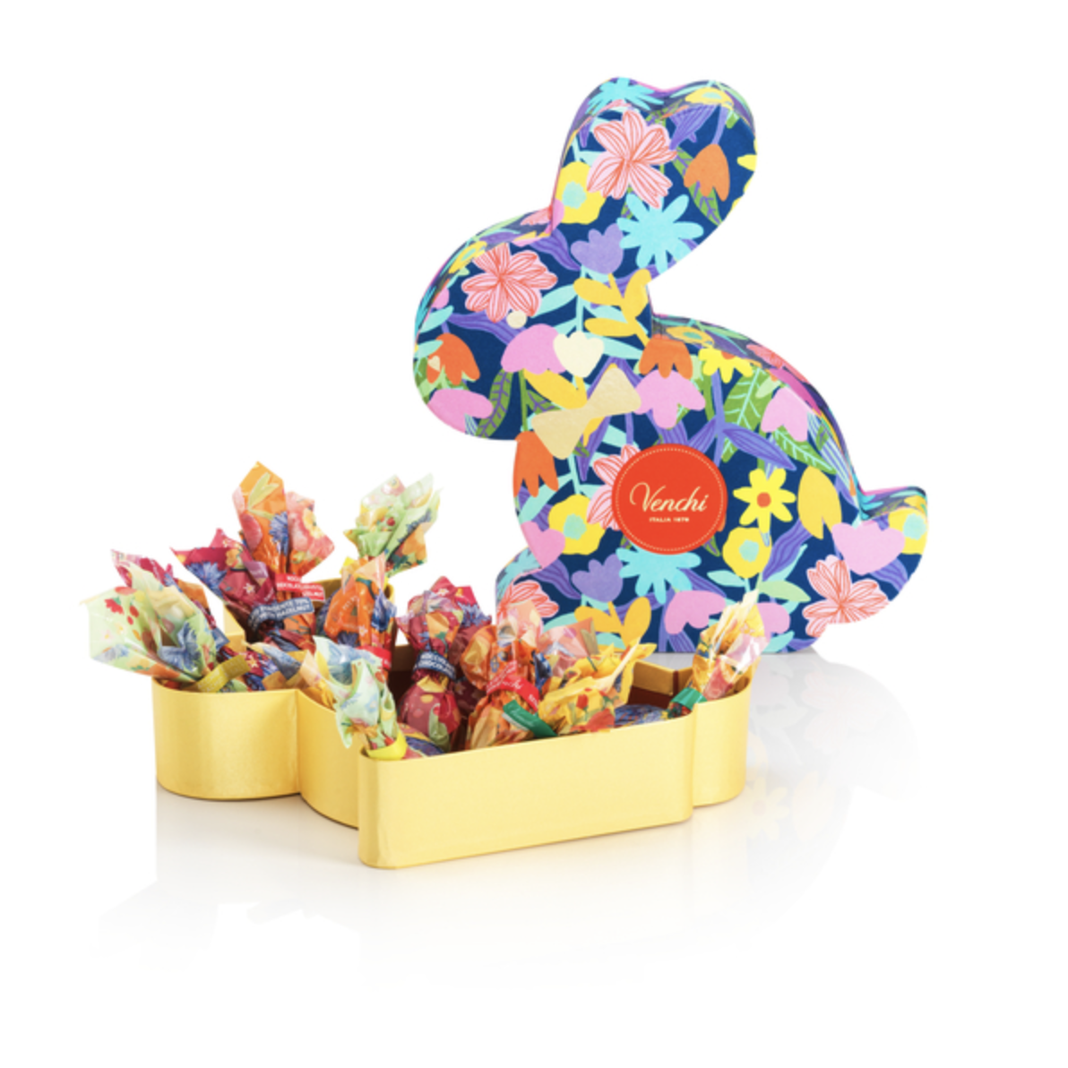 Venchi påskhare presentask med blommotiv innehåller blandade mini ägg/påsktartufini.